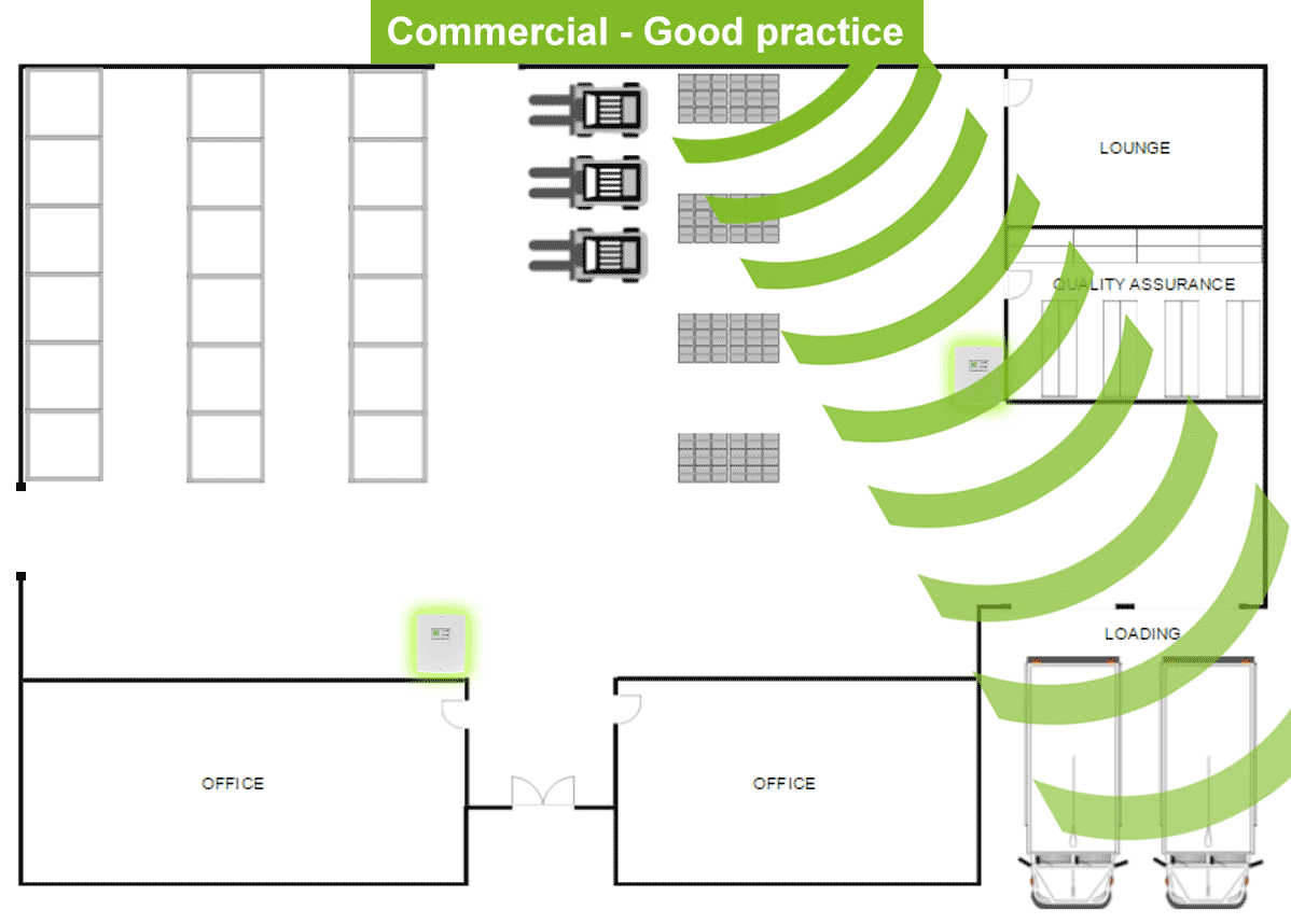 Nonostante la portata massima wireless sia il punto di riferimento accettato, negli scenari quotidiani non tutte le applicazioni hanno un percorso completamente libero e in queste situazioni è necessario tenere conto di ostacoli o interferenze di terzi.